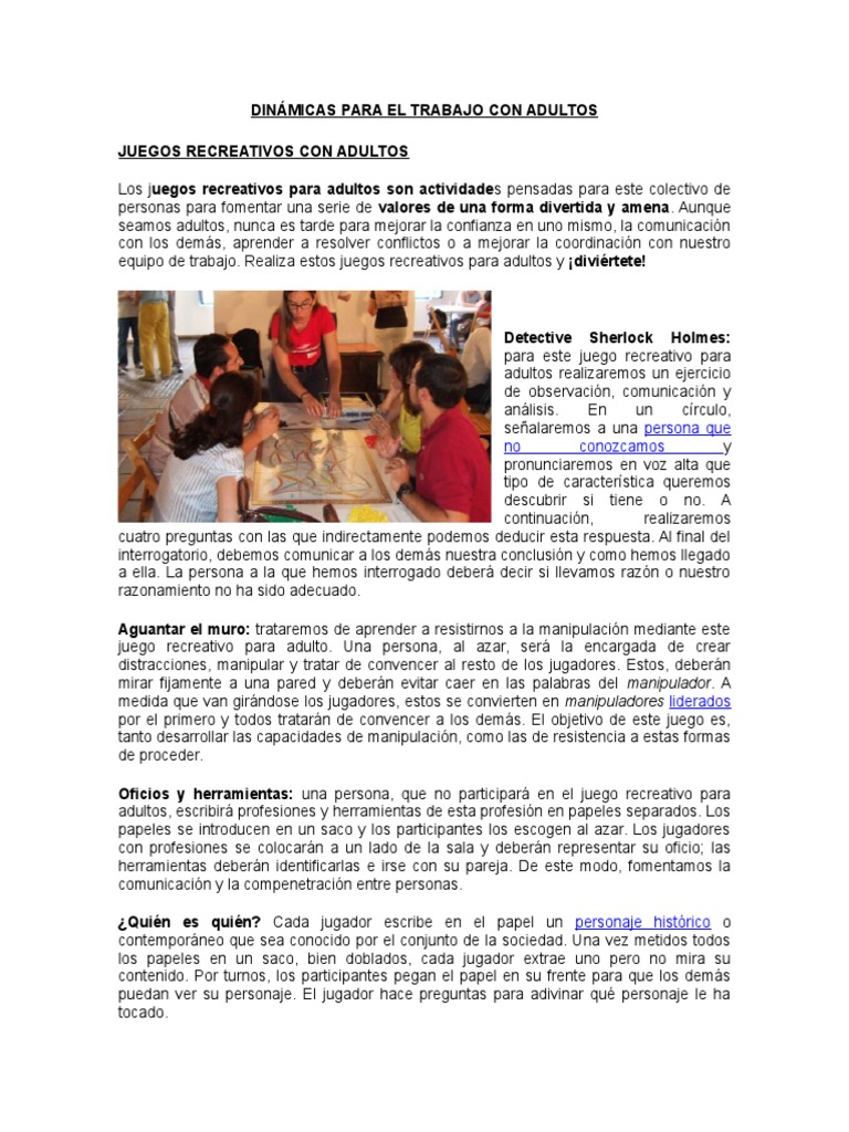 Juegos Recreativos Para Adultos Pdf Facebook Correo Electronico from imgv2-1-f.scribdassets.com En un deporte la idea es ganar, pero en los. Juego de presentación para adolescentes o jóvenes 00735. Cualquiera de ellos u otros que sean utilizados voluntariamente en el tiempo libre. Juegos recreativos para el mejoramiento de la incorporación del adulto mayor. Si quieres jugar juegos flash para adultos de forma gratuita, puedes hacerlo ahora mismo, en línea, sin registro. Aquí tienes 15 dinámicas, juegos y actividades recreativas para realizar con adultos. Actualmente existen varios juegos recreativos para adultos mayores que pueden. Juegos recreativos para upd campamentos adultos y ninos toro comuna altena inaugura juegos recreativos para adultos mayores